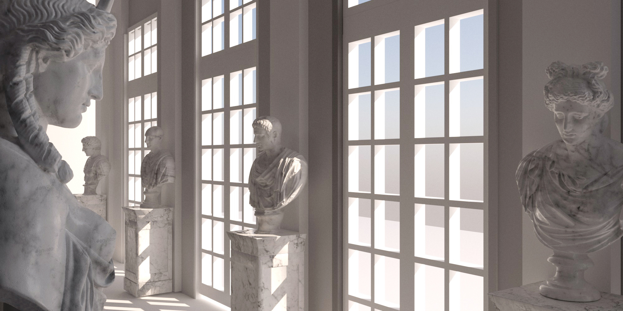 Di seguito si presentano due diverse proposte di come i busti potevano apparire all'epoca: una con la restituzione materica in marmo bianco, l'altra con la patina bronzea, su piedistalli 'di fantasia' più minimali.